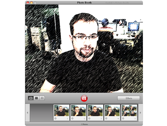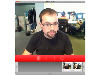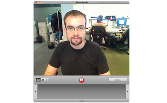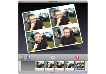 El manejo de Photo Booth para Windows 7 es muy sencillo: tras autorizar el uso de la cámara web, haz clic en el icono de la cámara para tomar una foto. El programa te da tres segundos para posicionarte. Las fotos aparecen en el carrete inferior y se pueden guardar o enviar a Facebook y Flickr.
